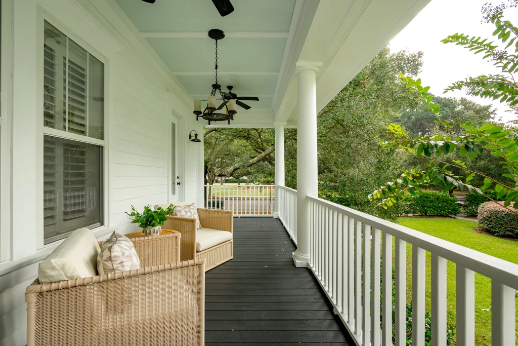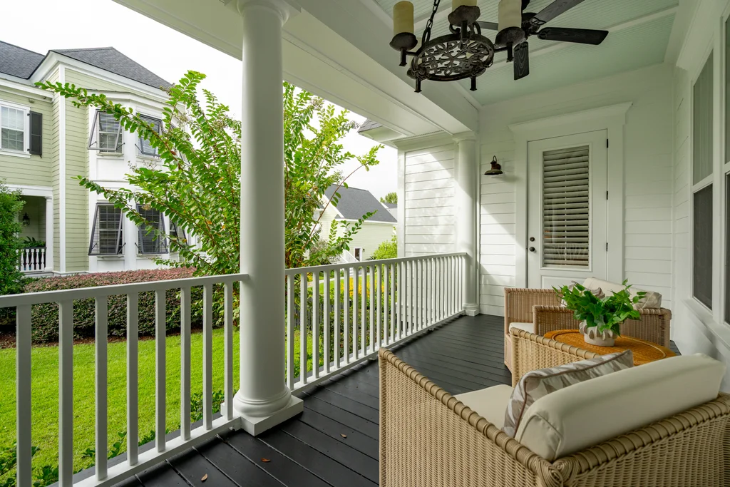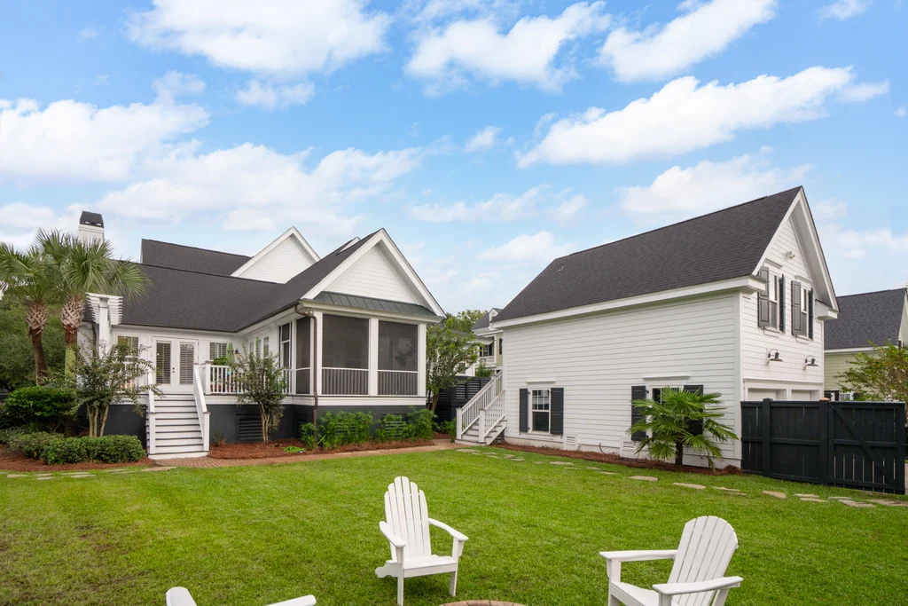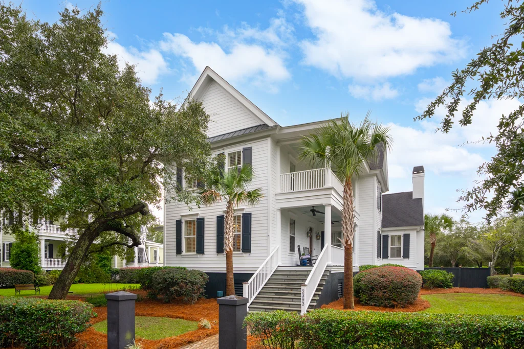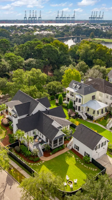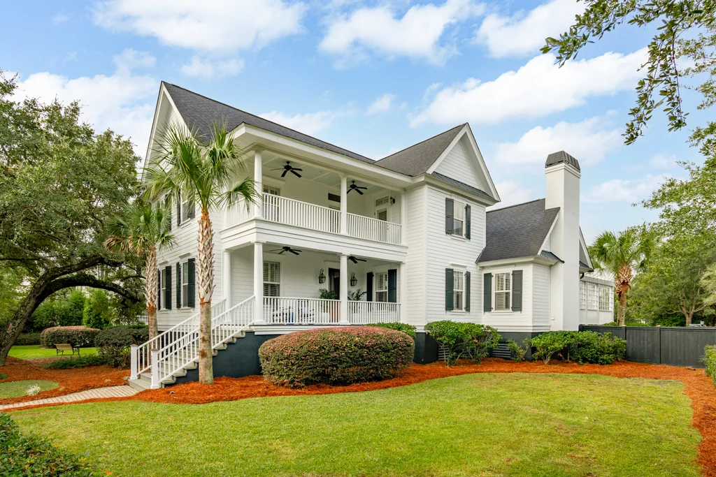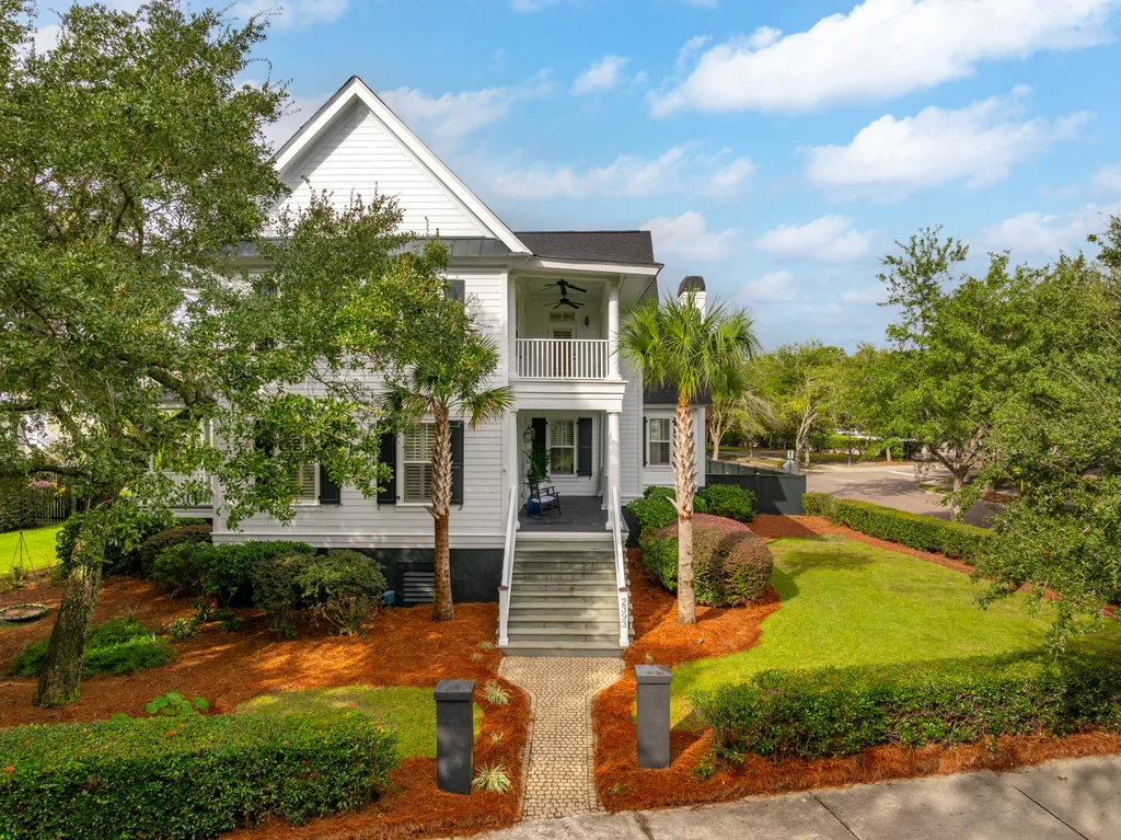 Welcome to timeless Charleston elegance across from Smythe Park. This custom-built home by New Traditions showcases classic Lowcountry architecture with Charleston-green porches, copper gutters, and a bluestone entry framed by moss-draped live oaks. Recent updates include a new roof and freshly painted exterior. Inside, heart-of-pine floors and natural stone counters complement an updated gourmet kitchen with high-end appliances, a Wolf 6-burner range, and Miele built-ins. The open layout offers expansive dining and entertaining spaces, and each bedroom includes its own en suite bath for privacy and comfort.Enjoy park and lake views from multiple porches and gathering areas. A fully equipped apartment above the garage provides additional flexibility for guests. With its refined craftsmanship, walkable location, and enduring curb appeal, this home embodies the best of Daniel Island living classic, convenient, and beautifully maintained.