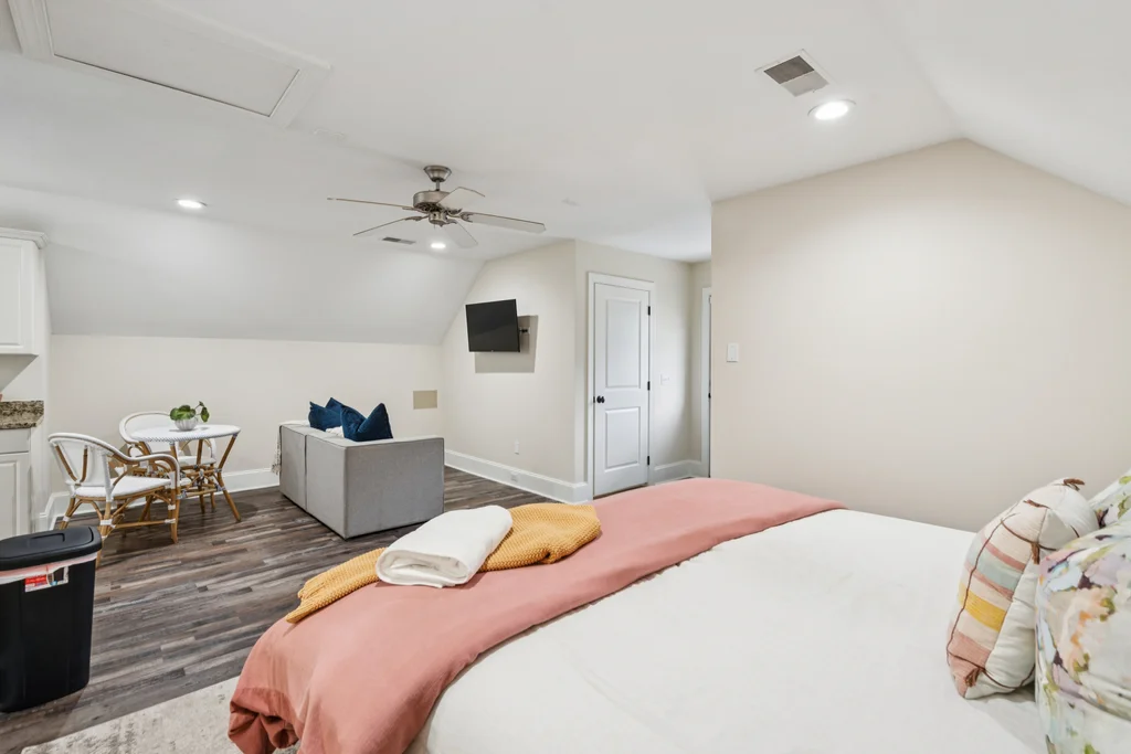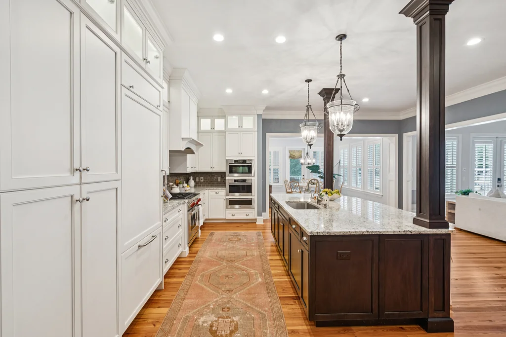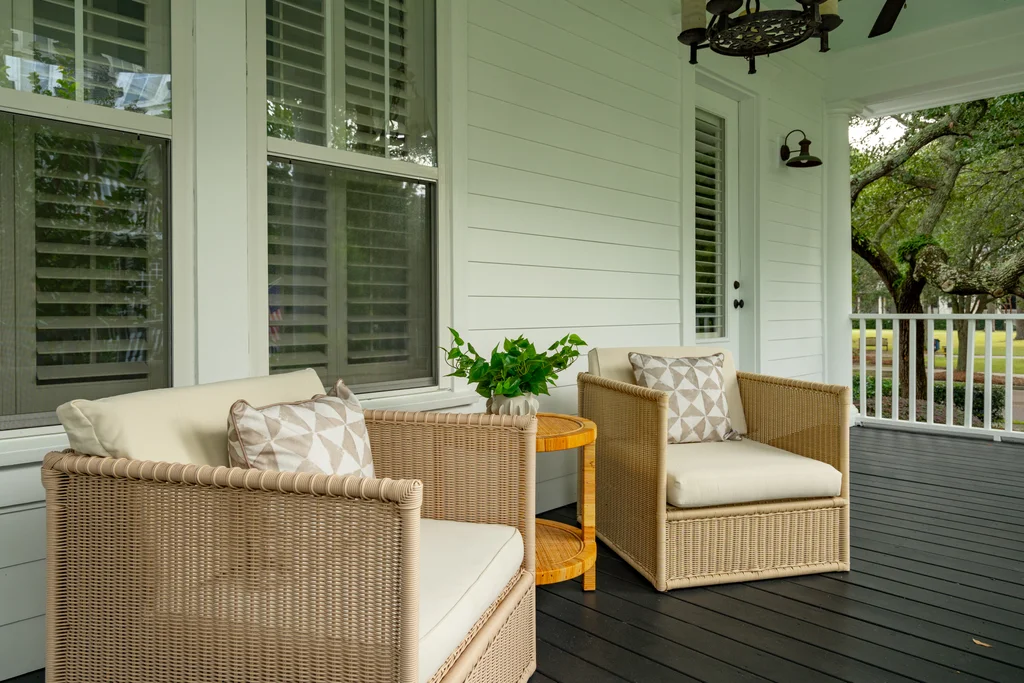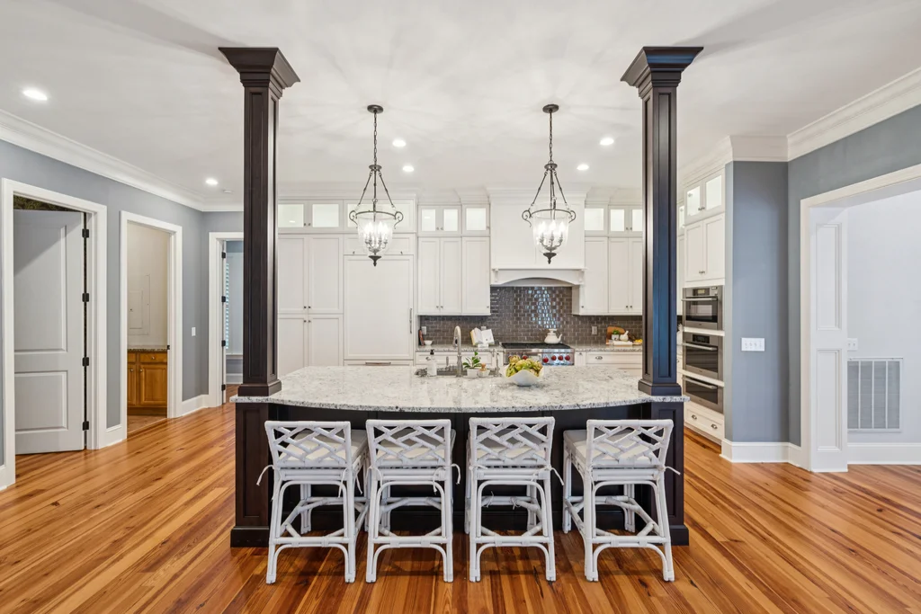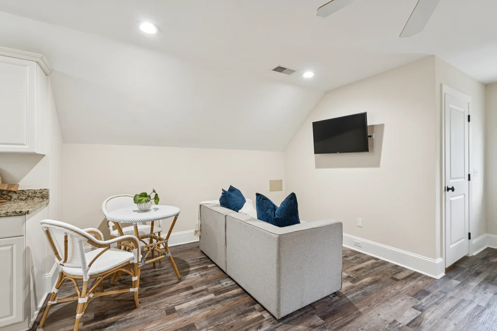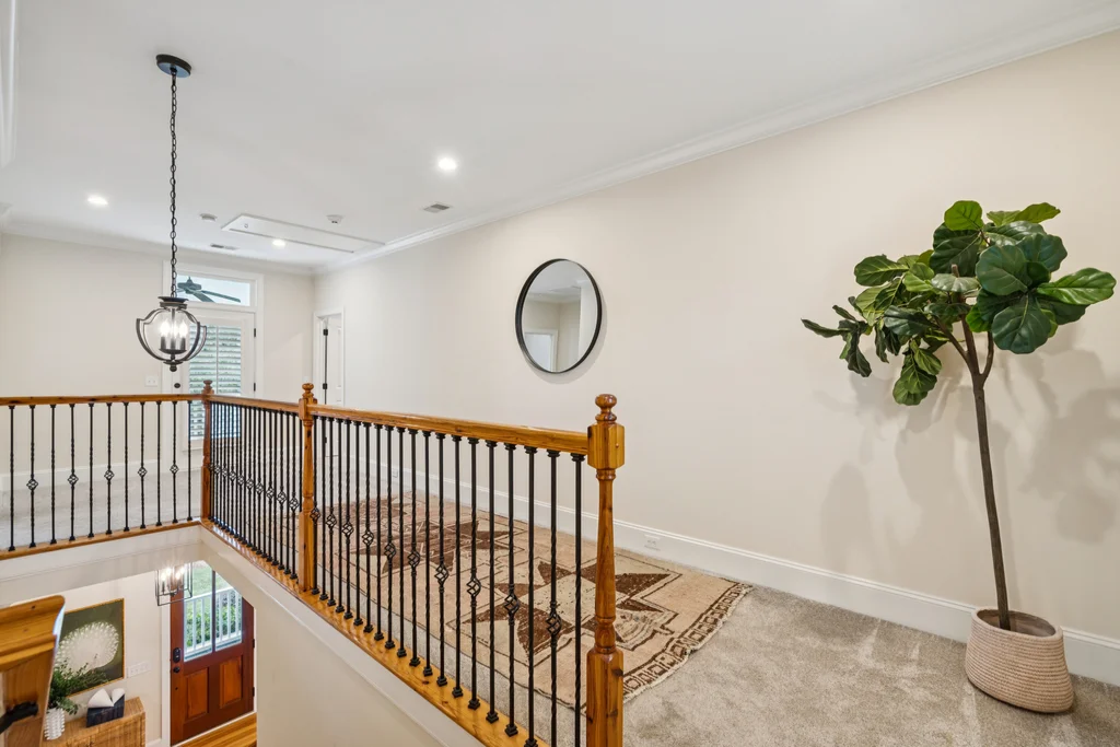 Welcome to timeless Charleston elegance across from Smythe Park. This custom-built home by New Traditions showcases classic Lowcountry architecture with Charleston-green porches, copper gutters, and a bluestone entry framed by moss-draped live oaks. Recent updates include a new roof and freshly painted exterior. Inside, heart-of-pine floors and natural stone counters complement an updated gourmet kitchen with high-end appliances, a Wolf 6-burner range, and Miele built-ins. The open layout offers expansive dining and entertaining spaces, and each bedroom includes its own en suite bath for privacy and comfort.Enjoy park and lake views from multiple porches and gathering areas. A fully equipped apartment above the garage provides additional flexibility for guests. With its refined craftsmanship, walkable location, and enduring curb appeal, this home embodies the best of Daniel Island living classic, convenient, and beautifully maintained.